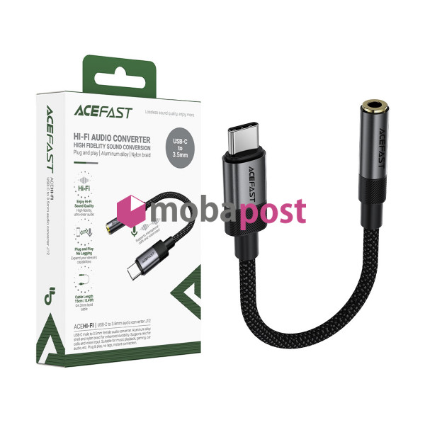 Адаптер Type-C - "3,5 мм" Jack Acefast J12 (оплетка нейлон) Черный — это высококачественное решение для подключения наушников с разъемом 3,5 мм к устройствам с портом Type-C. Он оснащен прочной нейлоновой оплеткой, что значительно увеличивает его долговечность и защищает от повреждений при частом использовании. Адаптер обеспечивает стабильную и качественную передачу аудио, гарантируя чистое звучание без потерь. Компактный и стильный черный дизайн идеально впишется в любой комплект аксессуаров. Благодаря своей универсальности, Acefast J12 подходит для большинства современных смартфонов, планшетов и других устройств с портом Type-C, предлагая удобство использования без необходимости заменять любимые наушники.