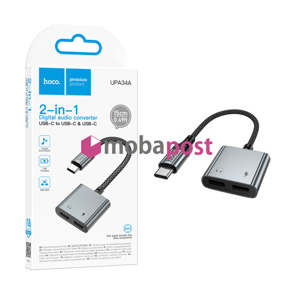 Адаптер Type-C – Type-C Hoco UPA34A предназначен для соединения устройств с разъёмом USB-C между собой. Он используется для зарядки и передачи данных — например, чтобы подключить смартфон к ноутбуку, зарядному устройству, пауэрбанку или другому аксессуару с разъёмом Type-C. Благодаря нейлоновой оплётке адаптер более прочный и устойчивый к износу, что удобно для повседневного использования дома, в офисе или в дороге.