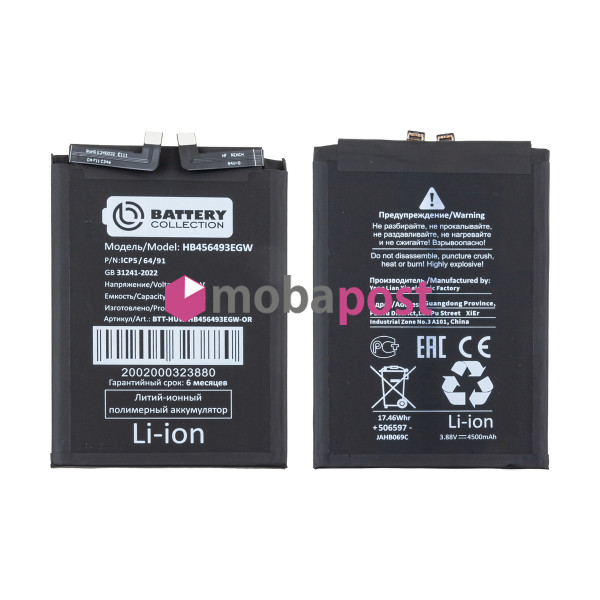 Данный аккумулятор полностью совместим с Вашим Huawei Nova 10 SE/11/11 SE/12 SE/12s (HB456493EGW) - Battery Collection.