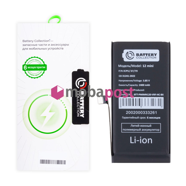 Аккумулятор для iPhone 12 mini - Battery Collection с верификацией - усиленная 2400 mAh - (Коробка + скотч + отвертка)