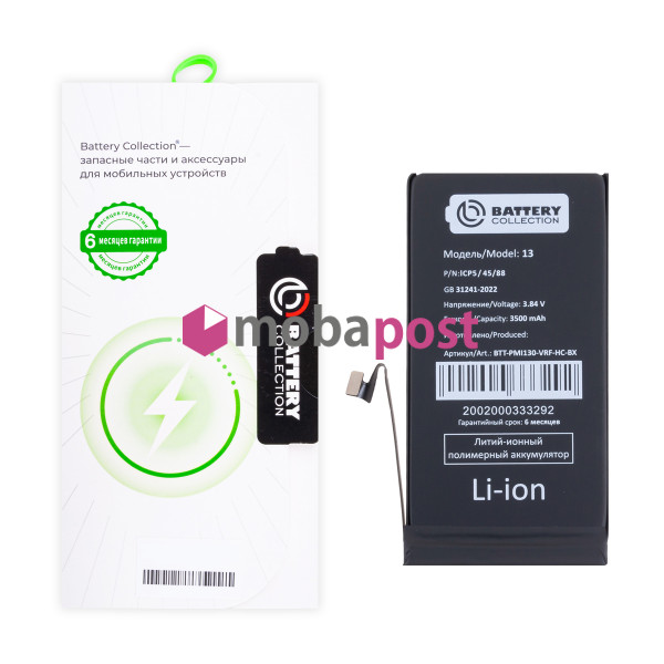 Аккумулятор для iPhone 13 - Battery Collection с верификацией - усиленная 3500 mAh - (Коробка + скотч + отвертка)
