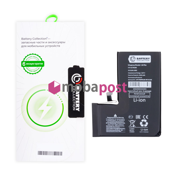 Аккумулятор для iPhone 14 Pro - Battery Collection с верификацией - усиленная 3510 mAh - (Коробка + скотч + отвертка)
