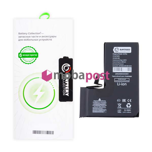 Аккумулятор для iPhone 15 Pro - Battery Collection с верификацией - усиленная 6400 mAh - (Коробка + скотч + отвертка)