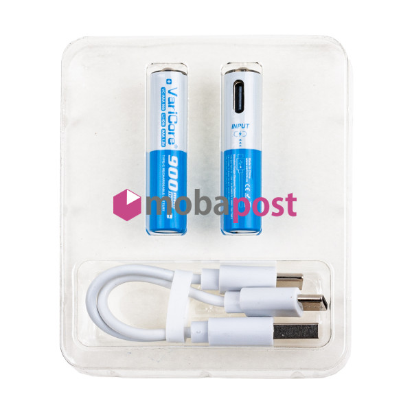 Аккумуляторные батарейки "AAA" VariCore Li-ion 1.5V 600 mAh (2 шт, перезаряжаемые, зарядка через Type-C)