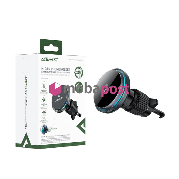 Автомобильный держатель Acefast D61 — стильное и удобное решение с поддержкой беспроводной зарядки мощностью до 25 Вт (Qi2). Благодаря магнитному креплению устройство надёжно фиксирует смартфон и позволяет легко устанавливать или снимать его одной рукой. Крепится в дефлектор вентиляции, не занимая лишнего места и сохраняя обзор дороги. Поддержка современных стандартов беспроводной зарядки обеспечивает быструю и безопасную подзарядку без проводов. Компактный корпус и серый цвет делают держатель универсальным аксессуаром, который гармонично впишется в интерьер любого автомобиля.