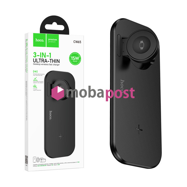 Беспроводное зарядное устройство Hoco CW65 (для смартфона + гарнитуры + iWatch) Черный