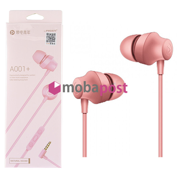 Гарнитура Pisen A001+ (вакуумные) Розовая