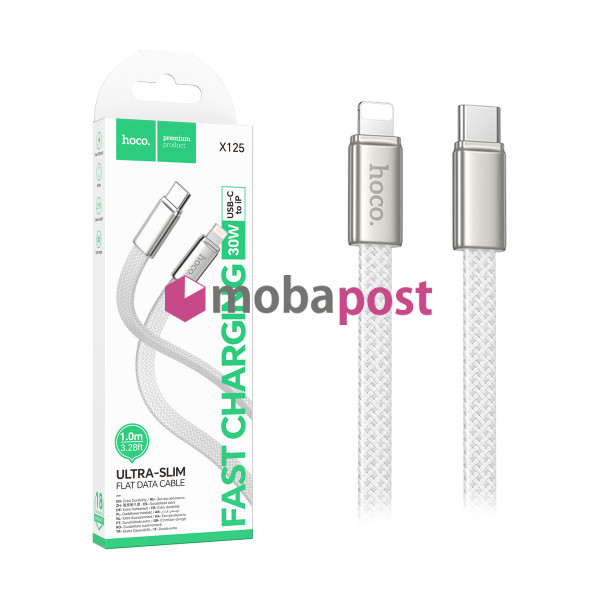 Кабель Type-C - Lightning Hoco X125 (3A, 30W, PD, оплетка нейлон) Белый