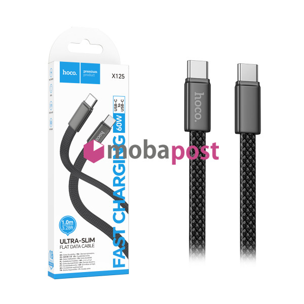 Кабель Type-C - Type-C Hoco X125 (3A, 60W, PD, оплетка нейлон) Черный