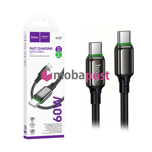 Кабель Type-C - Type-C Hoco X127 (3A, 60W, PD, оплетка нейлон) Черный