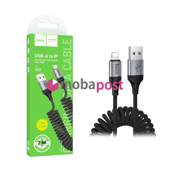 Кабель USB - Lightning Hoco X121 (2.4А, 1.5 м, пружина) Черный