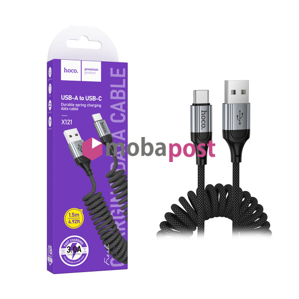 Кабель USB - Type-C Hoco X121 (3A, 1.5 м, пружина) Черный