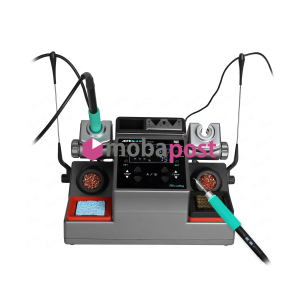 Паяльная станция Aifen A902 — это двухканальная цифровая паяльная станция, предназначенная для точной пайки различных электронных компонентов. Она используется с паяльником и работает на основе принципа теплопередачи через контакт с жала. Она не имеет функции термовоздушного потока, как у термовоздушных станций, и предназначена исключительно для пайки с использованием паяльного жала. Благодаря точному и стабильному нагреву эта станция подходит как для бессвинцовой, так и для обычной пайки.