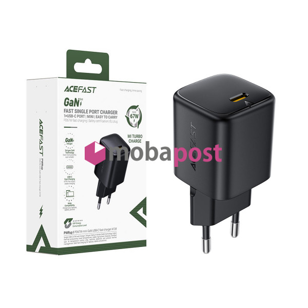 Сетевое зарядное устройство Type-C Acefast A134 (67W, PD, GaN) Черный
