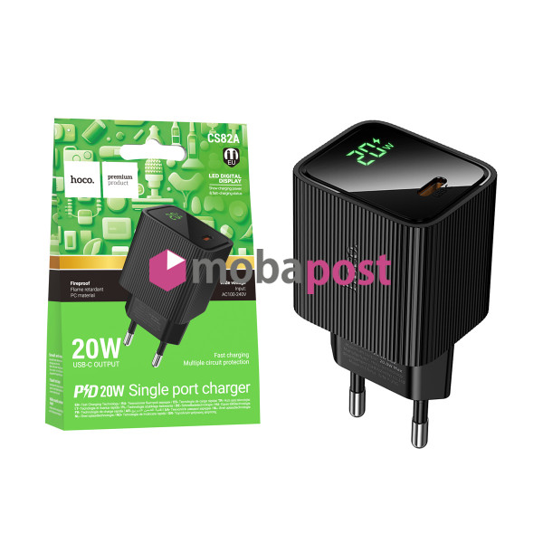 Сетевое зарядное устройство Type-C Hoco CS82A (20W, PD, с дисплеем) Черный — это компактное и мощное решение для быстрой зарядки ваших устройств. С мощностью 20W и поддержкой Power Delivery (PD), это зарядное устройство позволяет эффективно заряжать смартфоны, планшеты и другие устройства с разъемом Type-C на высокой скорости, сокращая время ожидания и улучшая повседневное использование.
