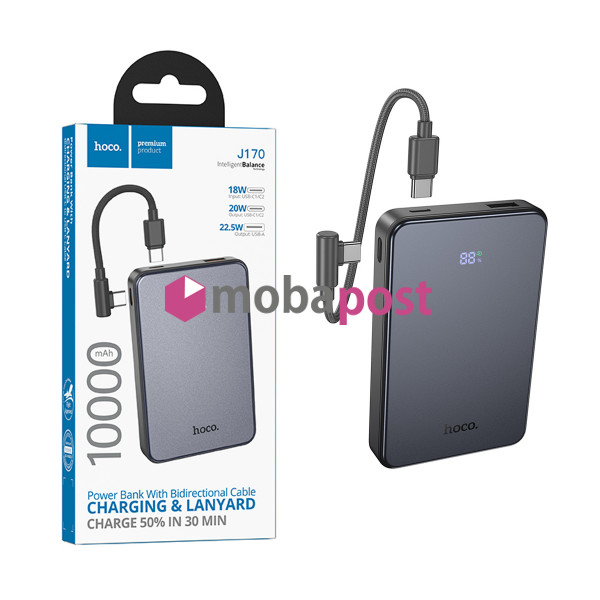 Внешний аккумулятор Hoco J170 10000 mAh — надёжный портативный источник энергии в стильном сером корпусе, обеспечивающий быструю и безопасную зарядку ваших устройств. Он поддерживает мощности до 22.5W и 20W, а также технологию PD для оптимальной скорости зарядки смартфонов, планшетов и других гаджетов. Аккумулятор оснащён портом Type-C и комплектным кабелем Type-C для удобства подключения, а LCD-дисплей отображает уровень заряда и статус работы устройства. Компактный и лёгкий, Hoco J170 идеально подходит для использования дома, в офисе и в путешествиях, гарантируя, что ваши устройства всегда будут заряжены.