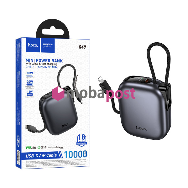 Поддержка быстрой зарядки Power Delivery (PD) мощностью до 20 Вт позволяет ускорить процесс зарядки. Ёмкость 10 000 mAh обеспечивает 2–3 полные зарядки смартфона. Встроенный LCD-дисплей показывает точный уровень заряда аккумулятора, чтобы вы всегда были в курсе оставшейся энергии. Лёгкий и удобный, Hoco Q49 отлично подойдёт для поездок и ежедневного использования.