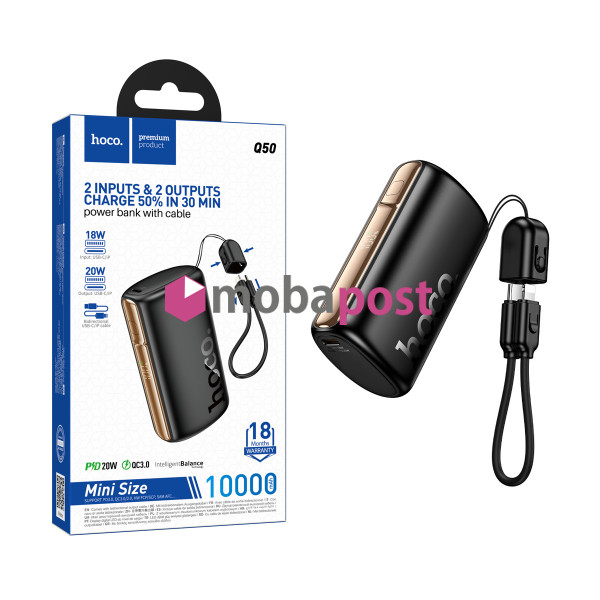 Внешний аккумулятор Hoco Q50 — это универсальное и удобное портативное зарядное устройство для смартфонов, планшетов, наушников и других гаджетов. Оснащён портом Type-C и встроенным кабелем Type-C–Lightning, что делает его идеальным как для iPhone, так и для Android-устройств.