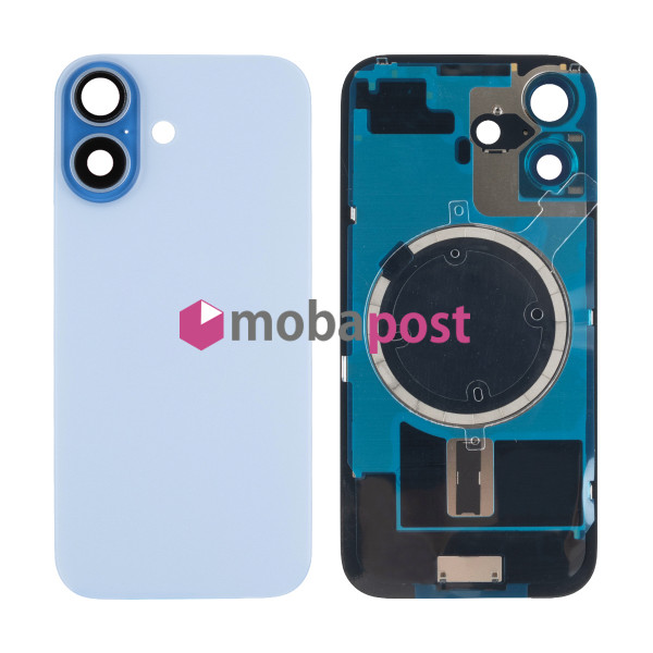 Задняя крышка для iPhone 17 (A3520) в сборе со стеклом камеры Голубой (стекло, монолит, MagSafe, логотип) - Премиум